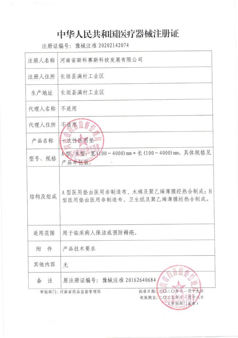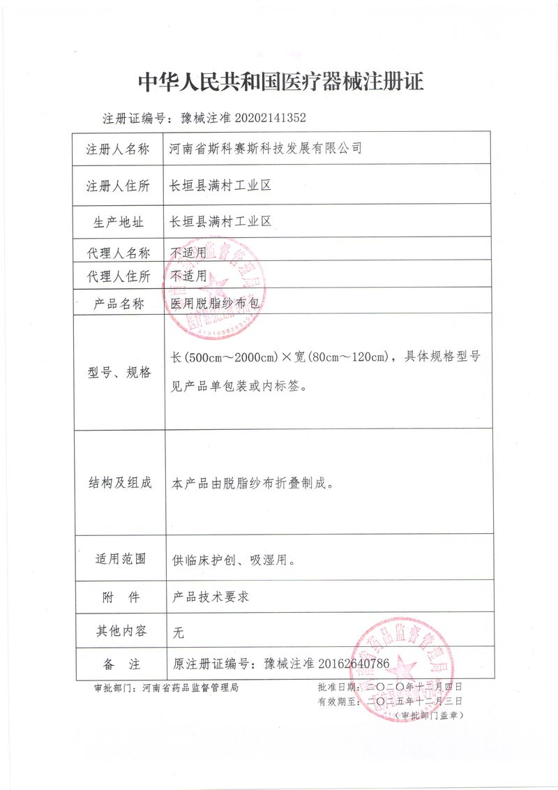 河南省斯科賽斯科技發(fā)展有限公司創(chuàng)建于 2011 年,位于“中國(guó)醫(yī)療耗材之都”- 河南省長(zhǎng)垣縣,西臨 308 省道,南靠新菏鐵路,北依長(zhǎng)濟(jì)高速,交通便捷,經(jīng)濟(jì)發(fā)達(dá),環(huán)境優(yōu)美。斯科賽斯積極進(jìn)入醫(yī)療健康和服務(wù)領(lǐng)域,秉承為用戶創(chuàng)造價(jià)值的理念,專(zhuān)注于醫(yī)用耗材解決方案的研發(fā)和運(yùn)營(yíng),并為用戶提供完善的產(chǎn)品解決方案;  斯科賽斯主要生產(chǎn)醫(yī)用麻醉系列、醫(yī)用高分子系列、醫(yī)用敷料包系列、醫(yī)用無(wú)紡布系列、醫(yī)用防護(hù)系列、醫(yī)用脫脂棉系列、生物材料制品類(lèi)等七大類(lèi)、100 多個(gè)品種、400 多個(gè)規(guī)格的產(chǎn)品。公司占地面積約 30000 平方米,建筑面積20000 平方米,擁有 10 萬(wàn)級(jí)的凈化車(chē)間總面積 10000 平方米。擁有國(guó)際先進(jìn)水平的生產(chǎn)設(shè)備和檢測(cè)儀器,技術(shù)裝備精良,檢測(cè)手段完善,為醫(yī)療行業(yè)的不斷發(fā)展進(jìn)步提供保障。公司順利通過(guò) ISO9001、ISO13485 質(zhì)量管理體系認(rèn)證。  斯科賽斯堅(jiān)持研發(fā)高科技新產(chǎn)品,力爭(zhēng)在醫(yī)療器械關(guān)鍵領(lǐng)域取得技術(shù)和研發(fā)的重大突破;立足國(guó)內(nèi)和國(guó)際兩個(gè)市場(chǎng),逐步實(shí)現(xiàn)管理理念、經(jīng)營(yíng)機(jī)制、人力資源、技術(shù)、產(chǎn)品、市場(chǎng)等全方位對(duì)接,提高企業(yè)的核心競(jìng)爭(zhēng)力;過(guò)去的歲月里,斯科賽斯砥礪前行,誠(chéng)信務(wù)實(shí),銳意進(jìn)取,不斷創(chuàng)新,用自己的睿智和辛勞,以富有責(zé)任感的使命,在探索中追求,在追求中超越,致力于成為值得信賴(lài)的醫(yī)療用品生產(chǎn)企業(yè)!在未來(lái)的日子里,斯科賽斯將一如既往豪情滿懷,信心百倍,攜手并肩,執(zhí)著追求,向更高的的目標(biāo)前進(jìn),鑄造新的輝煌!
